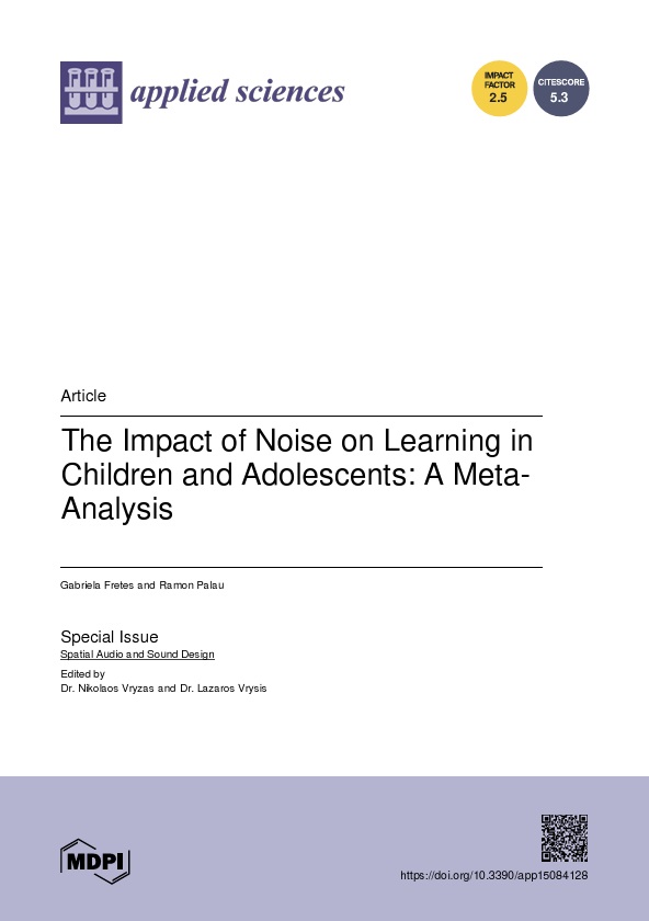 Fretes, G. & Palau, R. (2025). The Impact of Noise on Learning in Children and Adolescents: A Meta-Analysis. Applied Sciences, 15(8), 4128. https://doi.org/10.3390/app15084128 |