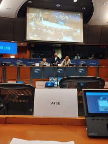 Mireia, membre del Comitè Assessor d'ATEE, va participar en un diàleg amb organitzacions educatives i de la societat civil al Parlament Europeu per debatre el futur del programa Erasmus+ (2028–2034).