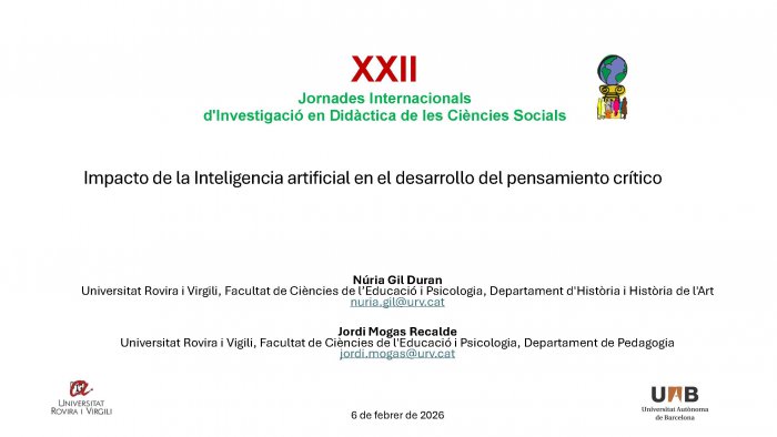 Ha presentat la ponència 'Impacto de la Inteligencia Artificial en el desarrollo del pensamiento crítico' amb la Núria Gil Duran.