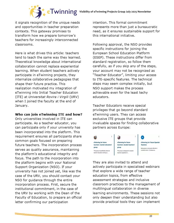 Lockhart, E.A. (2025). Why and How to Use eTwinning in Initial Teacher Education. eTwinning: Visibility of eTwinning Projects Group. July 2025 Newsletter. |