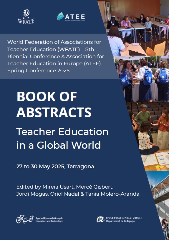 (2025) WFATE 8th Biennial Conference & ATEE Spring Conference 2025: Teacher Education in a Global World -Book of Abstracts. In M. Usart, M. Gisbert, J. Mogas, O. Nadal & Molero-Aranda, T. (eds), Publicacions Universitat Rovira i Virgili. Gisbert-Cervera, M., & Usart-Rodríguez, M. (2025). Towards a sustainable digital educational ecosystem: a conceptural model. . WFATE 8th Biennial Conference & ATEE Spring Conference 2025: Teacher Education in a Global World -Book of Abstracts. Publicacions Universitat Rovira i Virgili. Queralt-Romero, M., & Grimalt-Álvaro, C. (2025). Best educational practices with DT: analysis and evidence. WFATE 8th Biennial Conference & ATEE Spring Conference 2025: Teacher Education in a Global World -Book of Abstracts. Publicacions Universitat Rovira i Virgili.. Molero-Aranda, T., & Lázaro-Cantabrana, J.L. (2025). Co-creation of Sustainable Learning Spaces: An Interdisciplinary Experience of Educational Innovation. WFATE 8th Biennial Conference & ATEE Spring Conference 2025: Teacher Education in a Global World -Book of Abstracts. Publicacions Universitat Rovira i Virgili. Esteve-González, V., & López-Vilar, R. (2025). Observatory on digital competence in education: Educating citizens for the digital and global era. WFATE 8th Biennial Conference & ATEE Spring Conference 2025: Teacher Education in a Global World -Book of Abstracts. Publicacions Universitat Rovira i Virgili. Llurba, C. (2025). Podcast to promote the professional vocation of future teachers. WFATE 8th Biennial Conference & ATEE Spring Conference 2025: Teacher Education in a Global World -Book of Abstracts. Publicacions Universitat Rovira i Virgili. Gili-Moreno, S., Gisbert-Cervera, M., & Larraz, V. (2025). Democratic education and teacher training: an analysis from pedagogical thinking. WFATE 8th Biennial Conference & ATEE Spring Conference 2025: Teacher Education in a Global World -Book of Abstracts. Publicacions Universitat Rovira i Virgili. Nadal-Solanas, O., Usart-Rodríguez, M., Valls-Bautista, C., & Marqués-Molías, L. (2025). Creativity and technology in Physical Education: Preparing pre-service teachers through maker culture. WFATE 8th Biennial Conference & ATEE Spring Conference 2025: Teacher Education in a Global World -Book of Abstracts. Publicacions Universitat Rovira i Virgili. Rebolledo-Font de la Vall, R., Gisbert-Cervera, M., & Herrera, M. (2025). Repurposing multimodal AI tools for EFL essay writing. WFATE 8th Biennial Conference & ATEE Spring Conference 2025: Teacher Education in a Global World -Book of Abstracts. Publicacions Universitat Rovira i Virgili. Lockhart, E.A., & Barriuso, C. (2025). Exploring eTwinning in Initial Teacher Education.WFATE 8th Biennial Conference & ATEE Spring Conference 2025: Teacher Education in a Global World -Book of Abstracts. Publicacions Universitat Rovira i Virgili. |