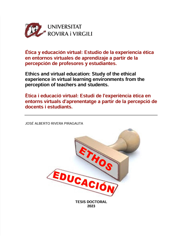 Autor: José Alberto Rivera Piragauta Titol: Ética y educación virtual: Estudio de la experiencia ética en entornos virtuales de aprendizaje a partir de la percepción de docentes y estudiantes Directora: Janaina Minelli De Oliveira Ramos Data de lectura: 9 de maig de 2023 Enllaç: pdf |